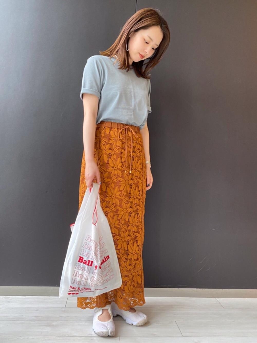 【身長:160cm】 エレガントな雰囲気のレーススカートを、tシャツとスポーティなサンダルでカジュアルに仕上げました◎
