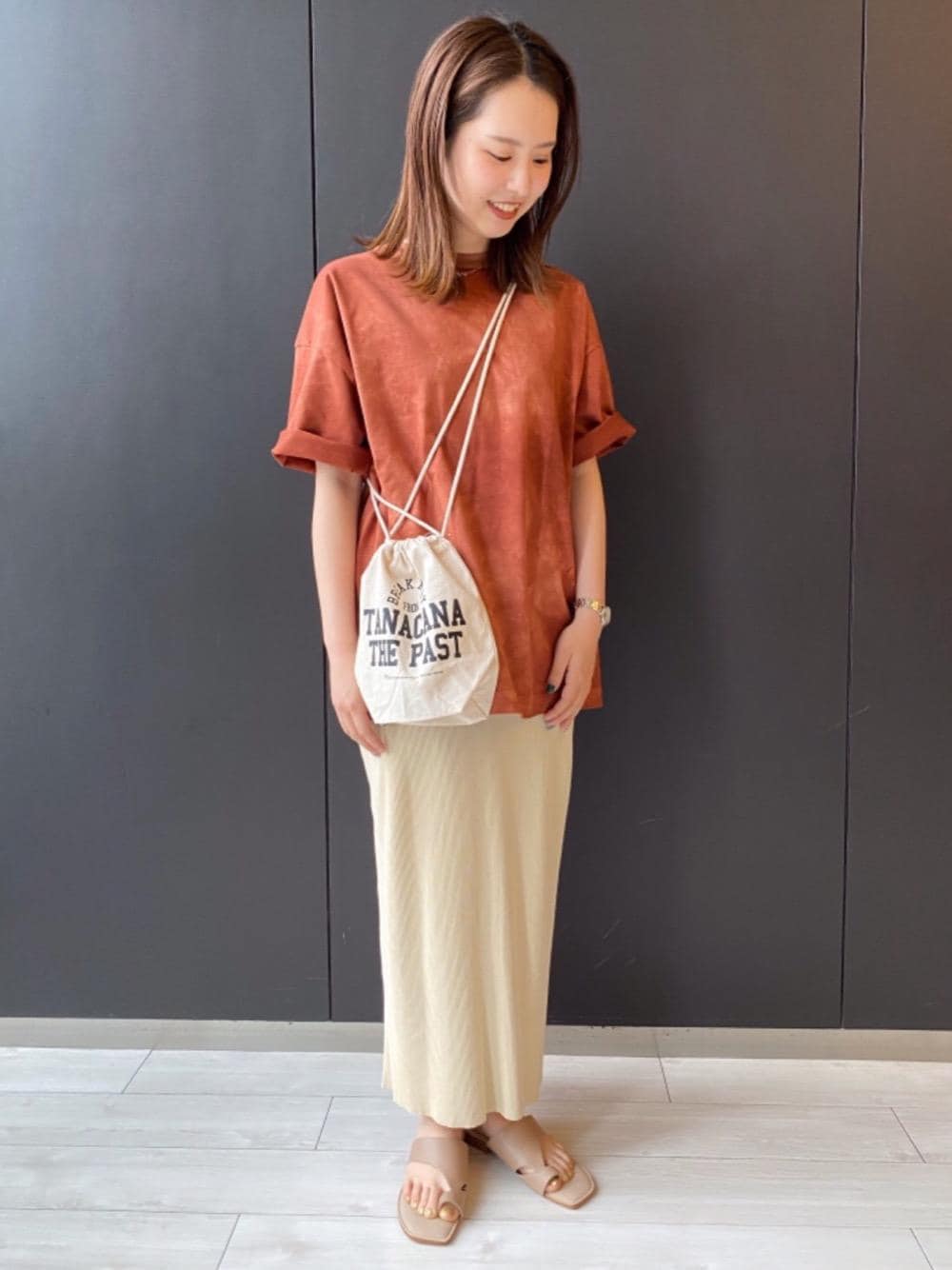 【身長:160cm】 メンズのタイダイ柄ゆったりtシャツは、夏にピッタリなお洒落れアイテムです◎スカート合わせで女性らしさも取り入れました!