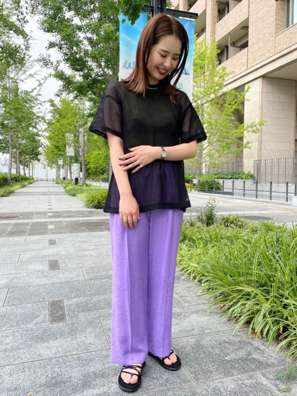 【身長:160cm】 トレンドのメッシュトップスに、カラーパンツを合わせ今年らしいスタイリングにしました◎
