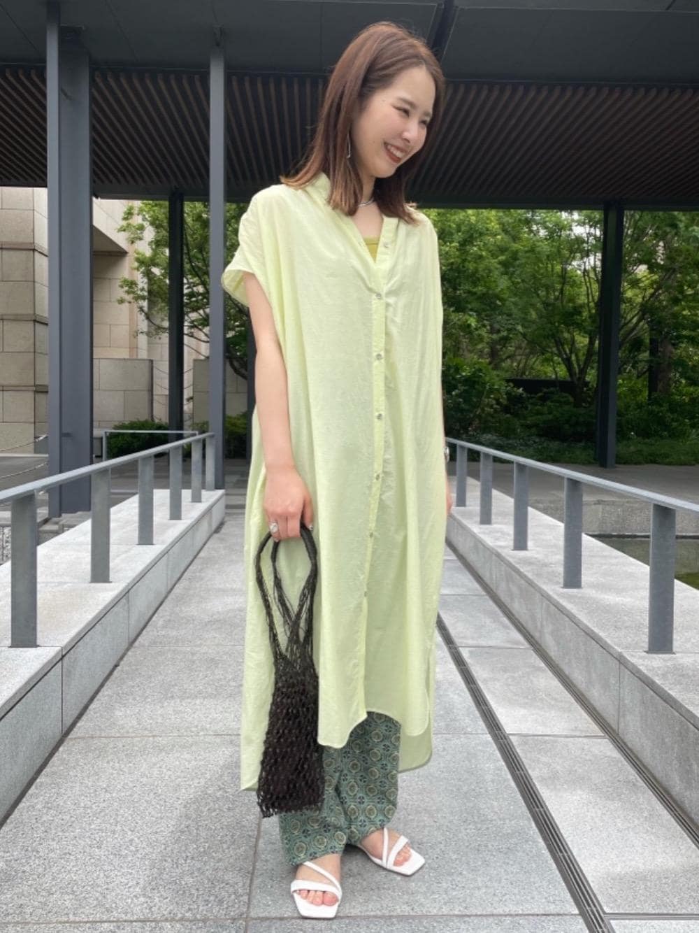 【身長:160cm】 トーンが異なるグリーンのアイテムを使ってワントーンコーデに仕上げました◎