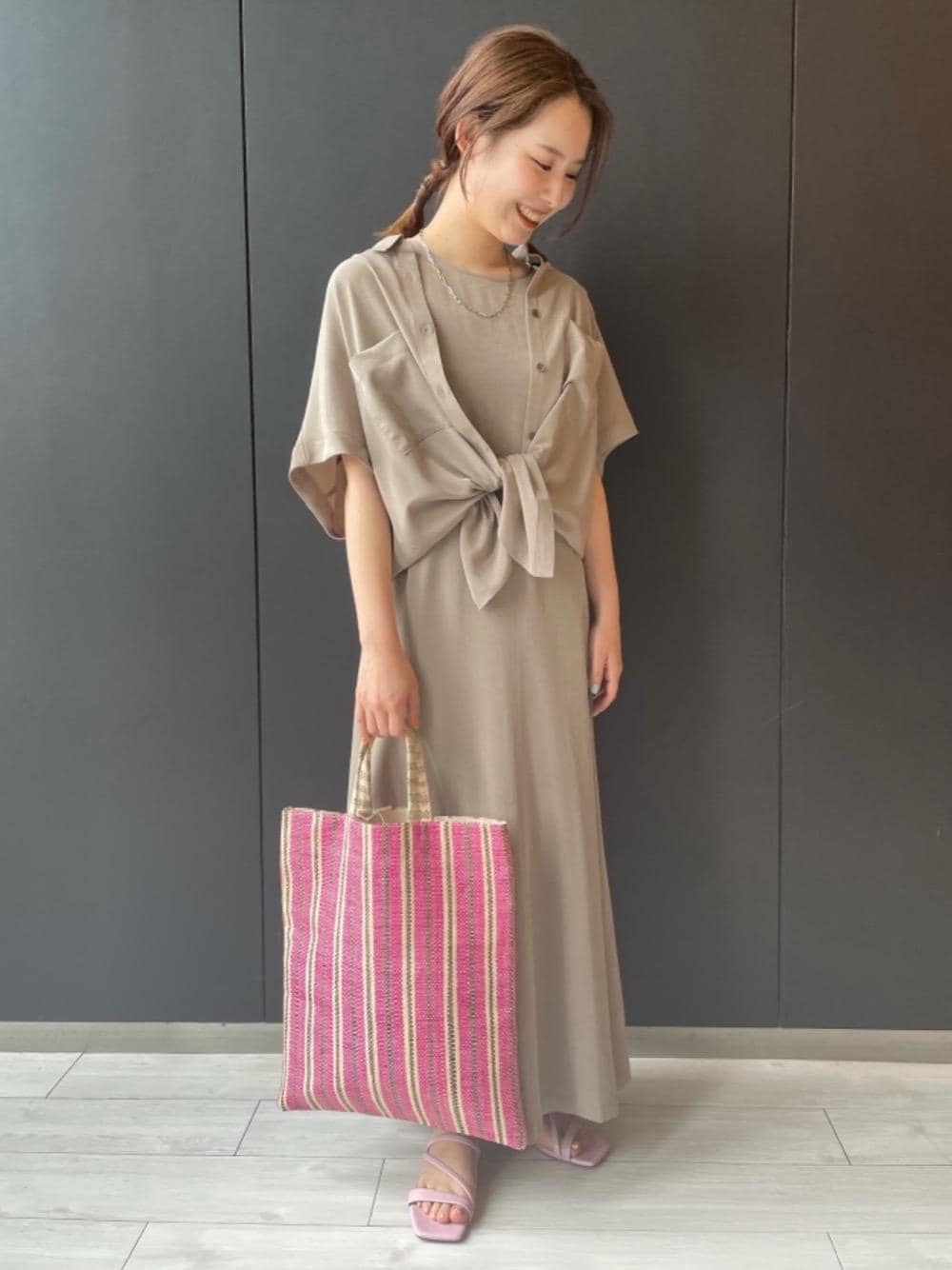 【身長:160cm】 同素材のワンピースとシャツを合わせ、セットアップで仕上げました◎
