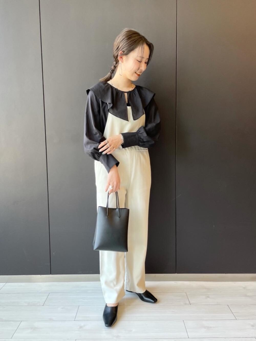 ●年齢:20代前半 ●身長:160cm ●普段サイズ:トップスM(38)/ボトムM(38)/シューズ23.5cm 【サイズ感】 トップス:ベーシック ボトムス:ややゆったりめ シューズ:ベーシック 【素材感】 トップス:柔らかい生地感 ボトムス:柔らかい 【コーディネートポイント】 トレンドのサロペットを、ブラウス合わせにモノトーンでまとめることでシックな雰囲気に仕上げました◎