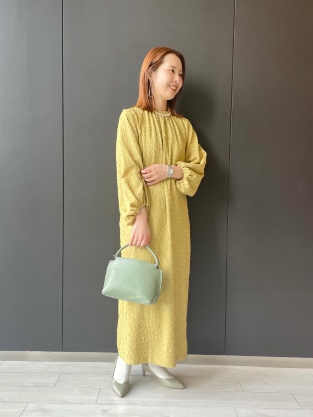 ●年齢:20代前半 ●身長:160cm ●普段サイズ:トップスM(38)/ボトムM(38)/シューズ23.5cm 【サイズ感】 ワンピース:ややゆったり 【素材感・着心地】 ワンピース:ポリエステル素材なので、シワ感も気にせずきていただけます。 【コーディネートポイント】 結婚式やお食事など綺麗めな場面にきていただけるワンピースを少しカジュアルダウンしたスタイリングにしました○