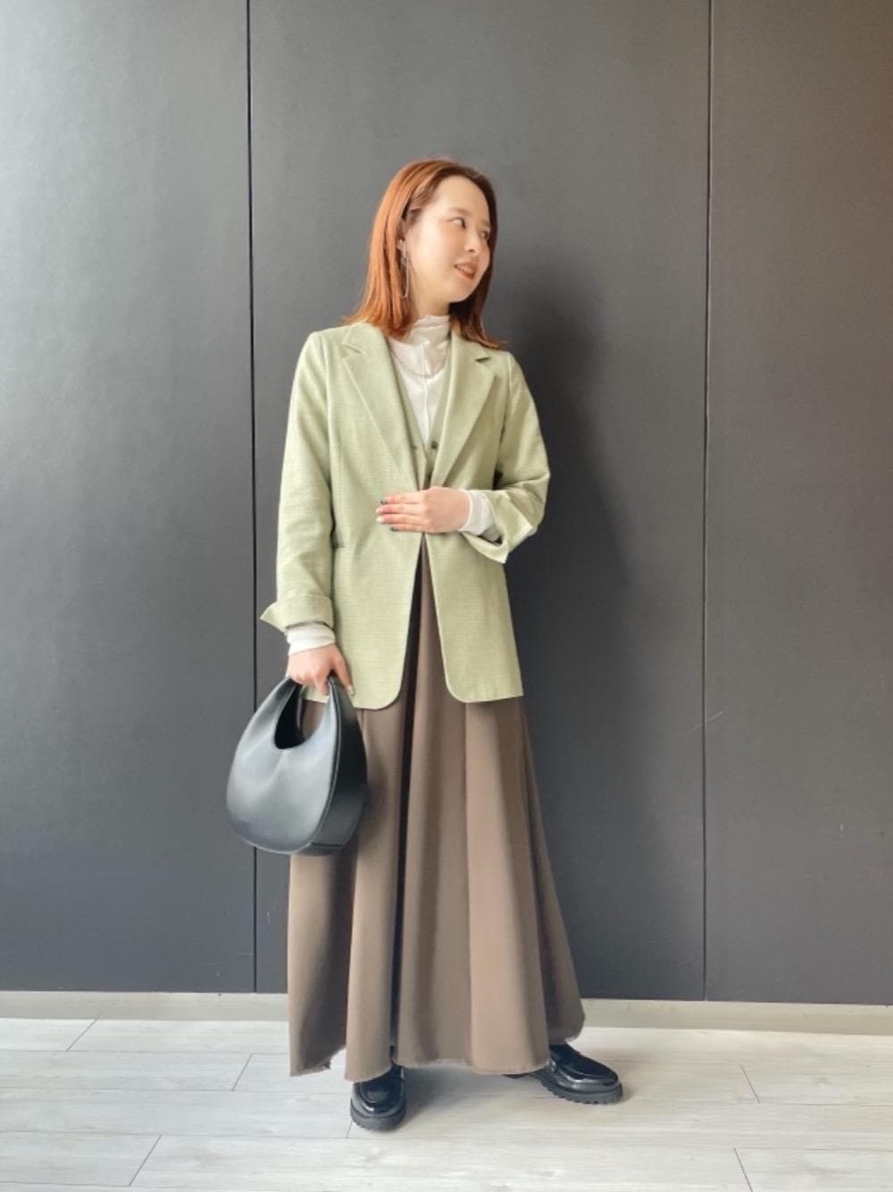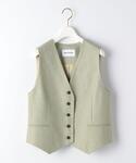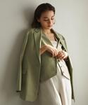 ●年齢:20代前半 ●身長:160cm ●普段サイズ:トップスM(38)/ボトムM(38)/シューズ23.5cm 【サイズ感】 ジャケット:ややゆったり スカート:ベーシック 【素材感・着心地】 スカート:サラッとしており、少し光沢のある素材感 【コーディネートポイント】 ベストと同素材のジャケットはセットで合わせるだけでおしゃれなスタイリングに仕上がります○
