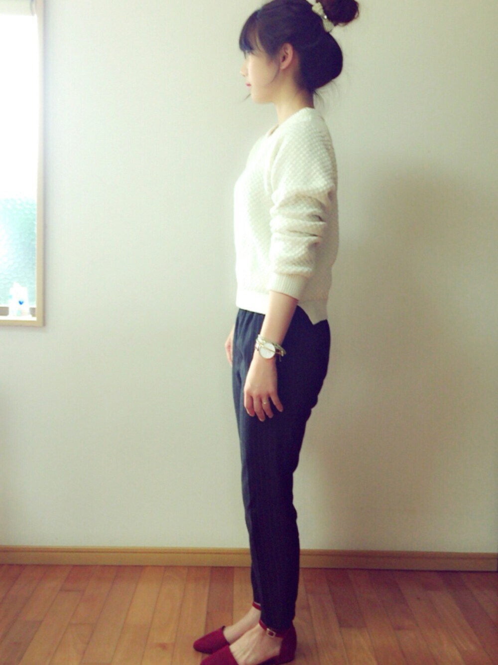 赤のセパレートパンプスは歩きやすいし、 カジュアルな時ポイントとして使えるから 気に入ってます👠 寒くなるからもうはけなくなってくる😂 履き納めかなっ!!
