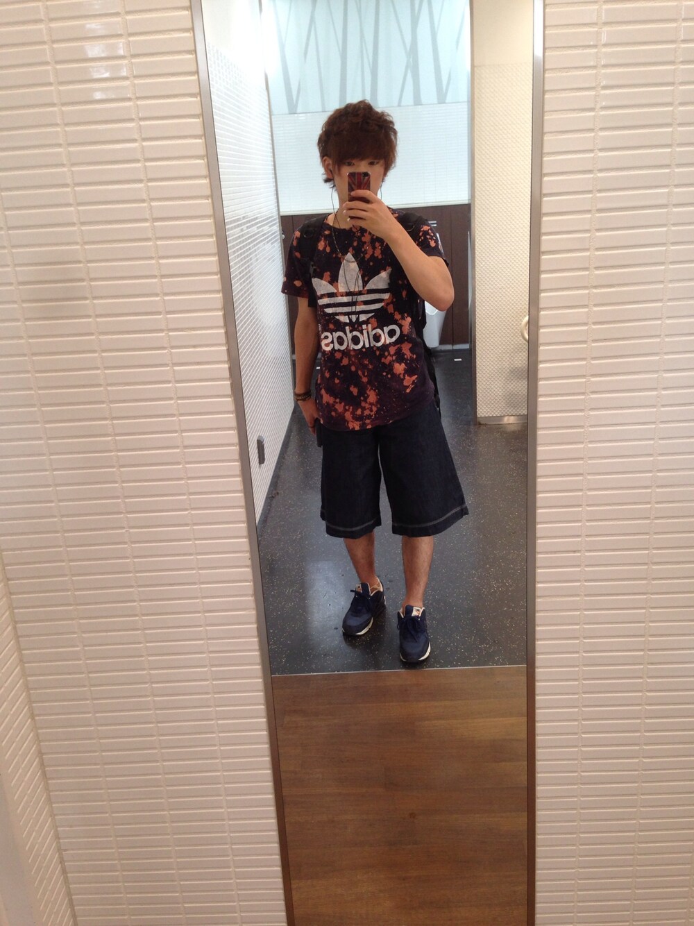 adidasトレフォイルのブリーチTeeにデニムのハカマショーツにAIR MAX どれもお気に入り 今日は川釣りだから動きやすい格好で夏らしさも
