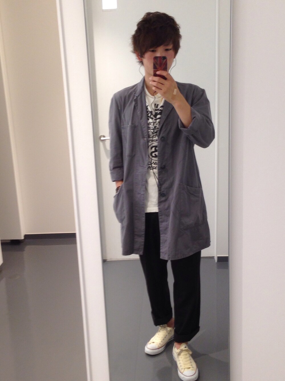 スニーカー以外古着。 ショップコートは昨日購入したばっかのお気に入り できるかぎりモノトーン系に近づけたつもり