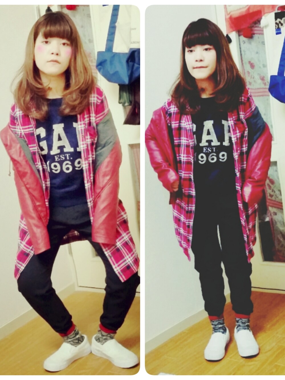 あ、ジャケット着てる途中です。 っていう風~笑 まぬけな感じですみません♡ パンツを靴下にinして、おじいちゃんコーデです(^-^)/