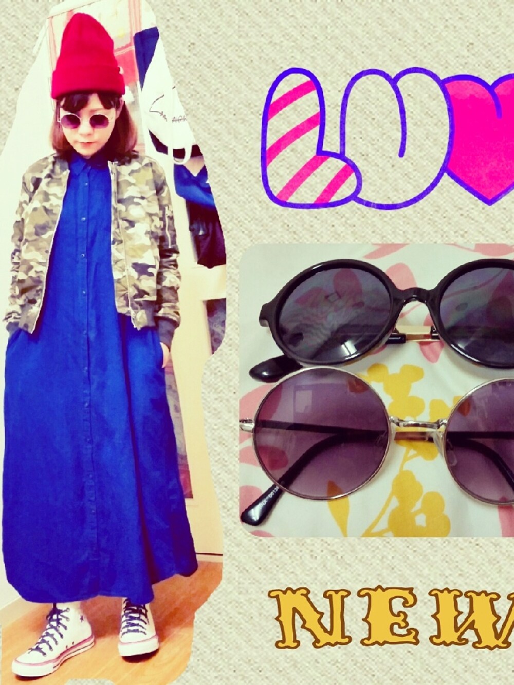 ジョンレノンとかジャンレノみたいなサングラスが欲しくて欲しくて(´∇`) 激安でgetしました♥