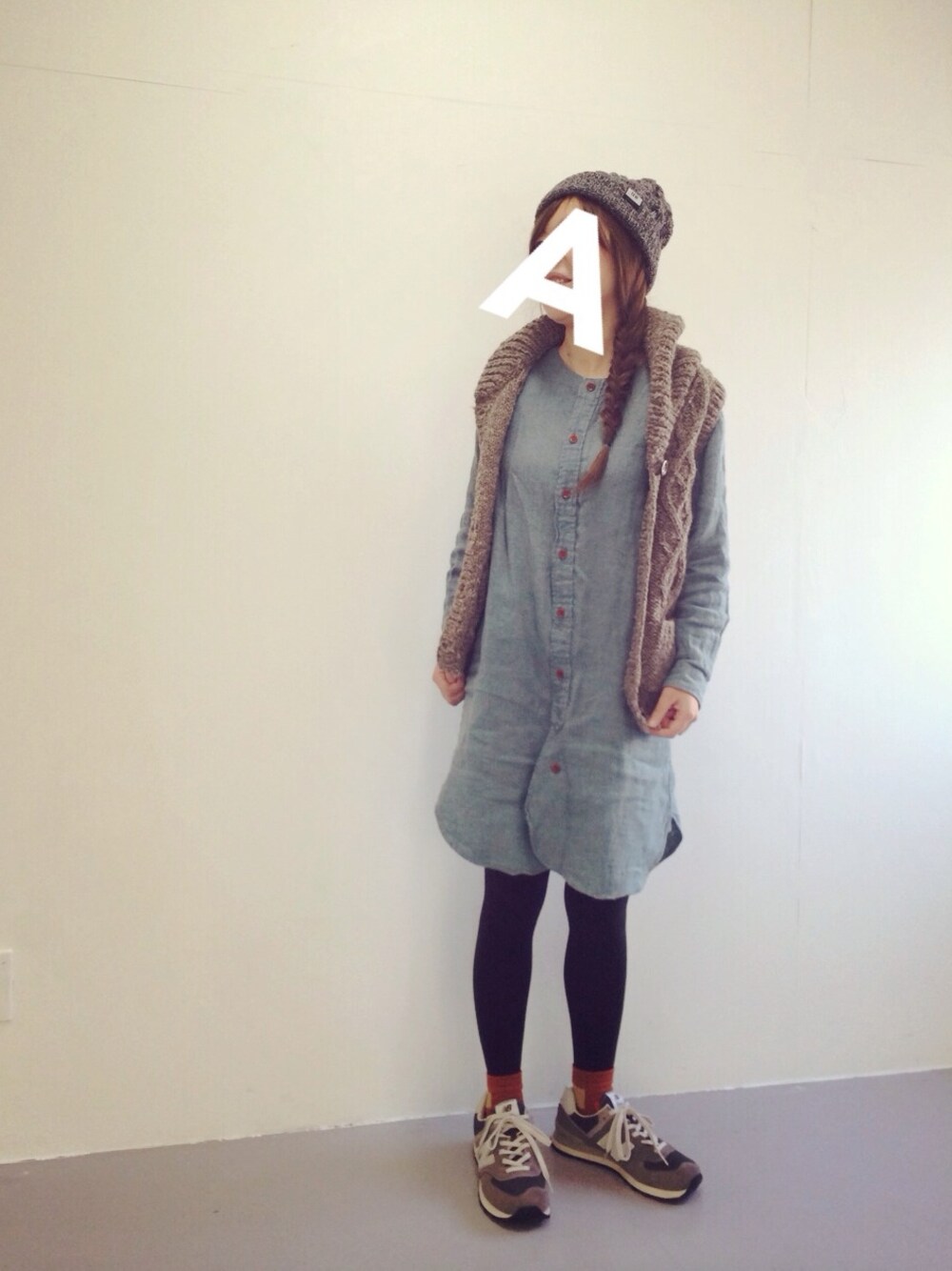 小春日和ですね、ビームスボーイのワンピースにニットベストを重ねてます(^ω^) ニューバランスのスニーカー最近買ったのでルンルンです〜
