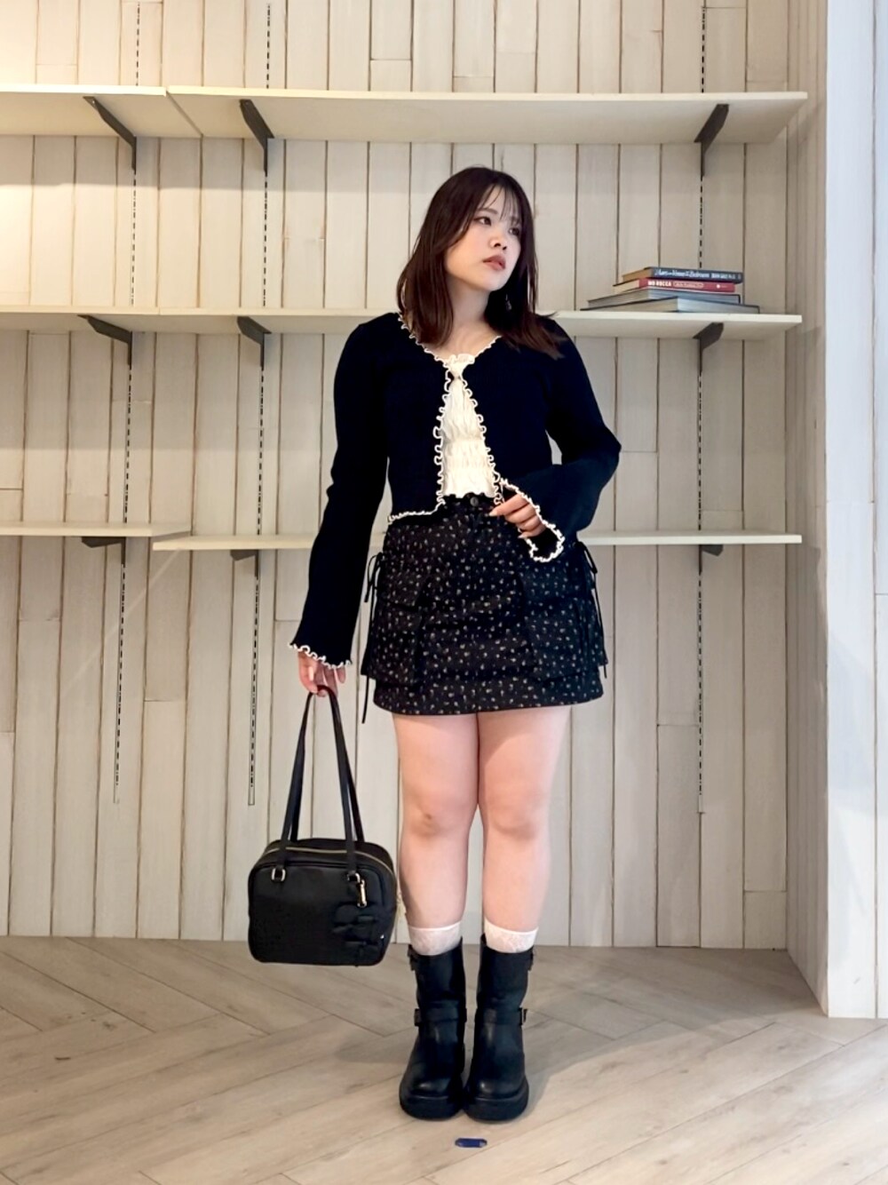 155cm,24cm,イエベ春,骨格ウェーブ ⭐︎カーディガン 二の腕部分にゆとりがあるのと縦リブなので腕細く見えます◎手元がフレアになってるので手綺麗に見える+弱萌え袖になるのでキレイめもあざとさも叶う一枚です♡ 前は4つホックがついていて今回私は1つ止めてます◎ ⭐︎スカート 台形のスカートなので、骨盤が気になる私でも綺麗にカバーしてくれて着痩せ出来るスカートです◎ ⭐︎ブーツ 24〜24.5cmの普段Lサイズを履いている私は今回Mサイズを着用してちょうど良かったです◎