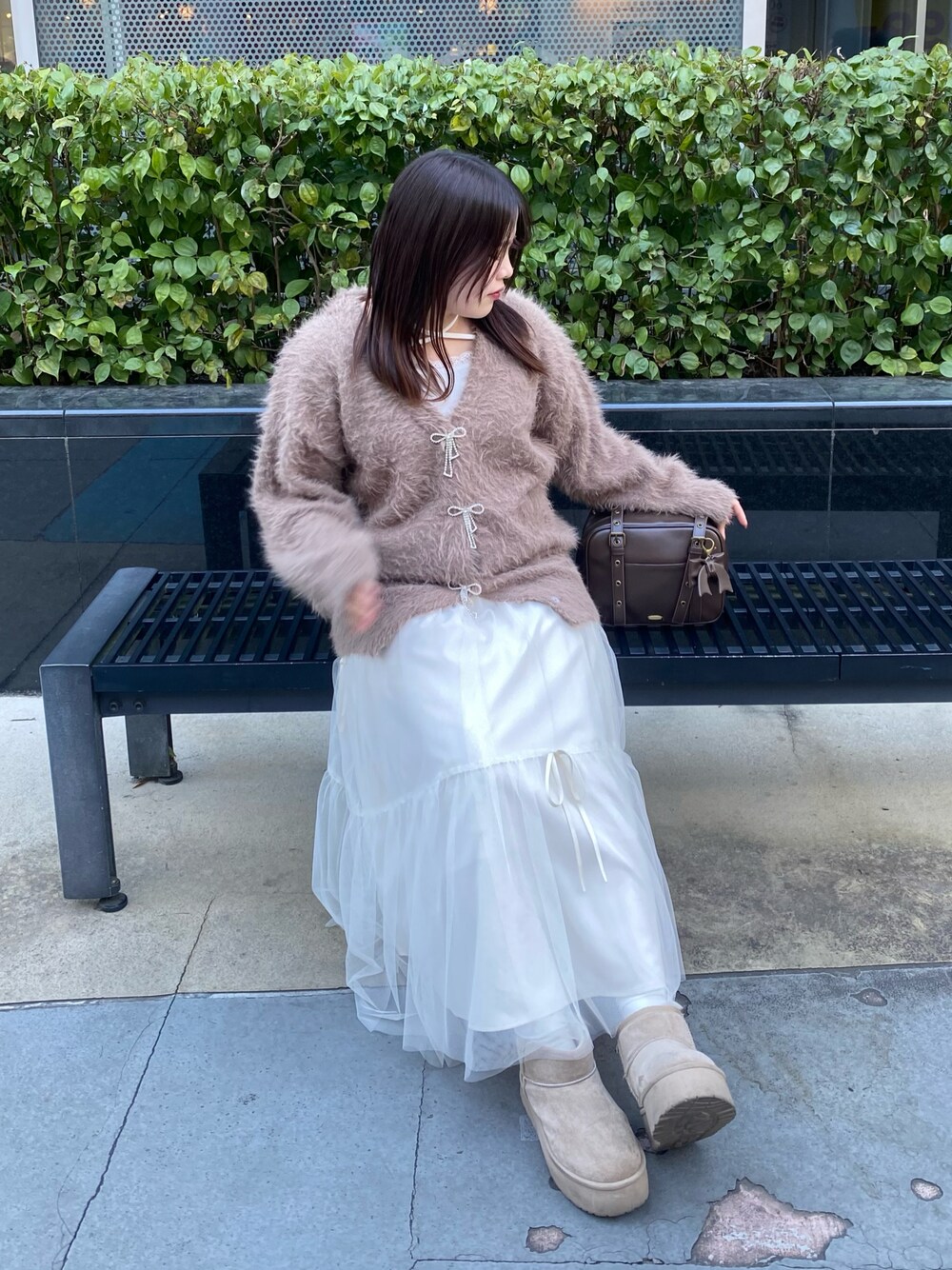 aino(OLIVE des OLIVE 名古屋パルコ)のカーディガン/ボレロ「フェザーリボンビジューカーデ」を使ったコーディネート