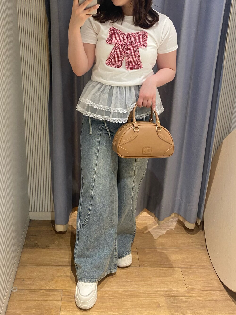 aino(OLIVE des OLIVE 名古屋パルコ)のTシャツ/カットソー「リボンTシャツ」を使ったコーディネート