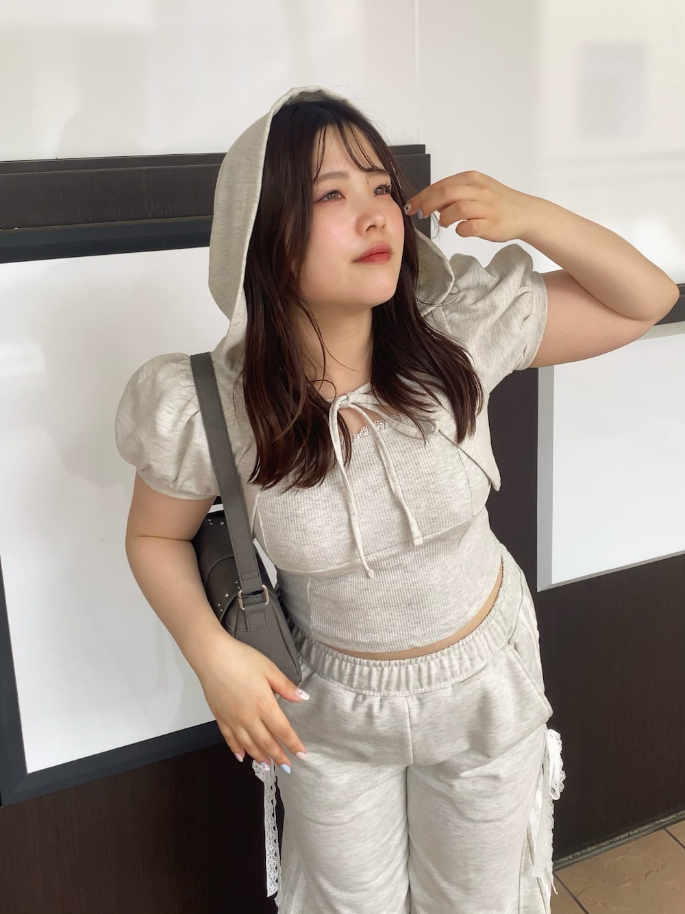 aino(OLIVE des OLIVE 名古屋パルコ)のTシャツ/カットソー「フードレイヤードトップス」を使ったコーディネート