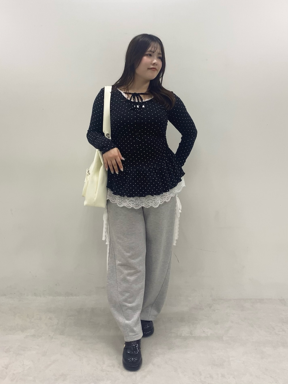 aino(OLIVE des OLIVE 名古屋パルコ)のTシャツ/カットソー「裾レースドロストトップス」を使ったコーディネート