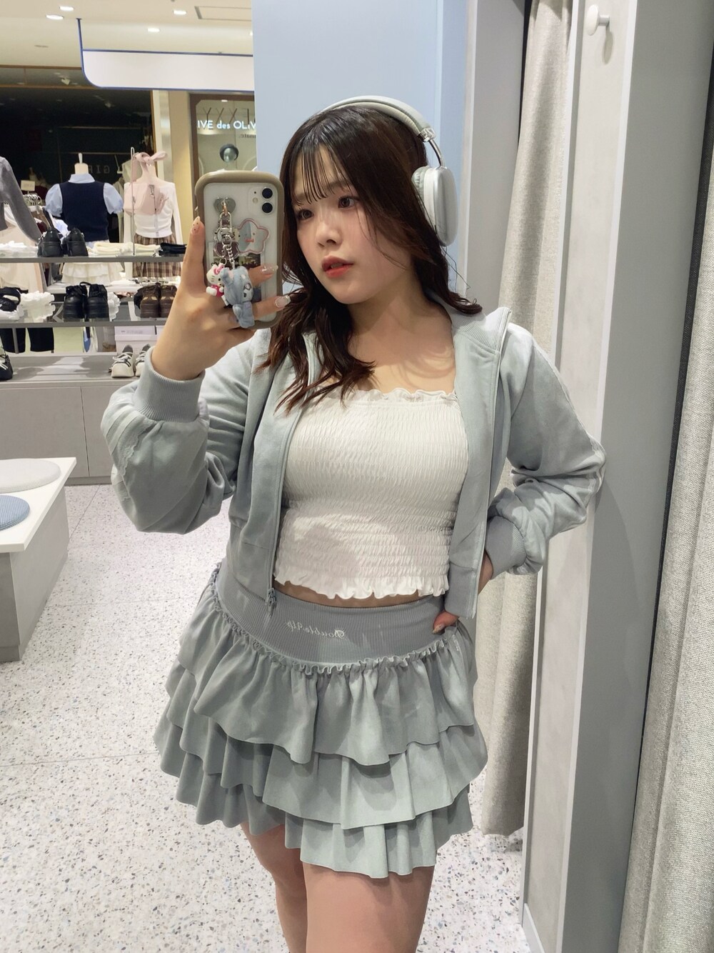 aino(OLIVE des OLIVE 名古屋パルコ)のジャージ「ショートトラックジャケット」を使ったコーディネート