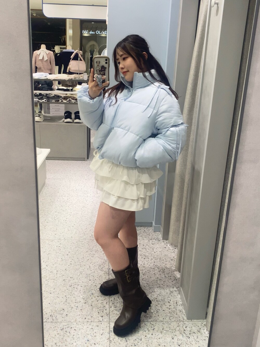 aino(OLIVE des OLIVE 名古屋パルコ)のダウンジャケット/コート「リボンエコダウンブルゾン」を使ったコーディネート