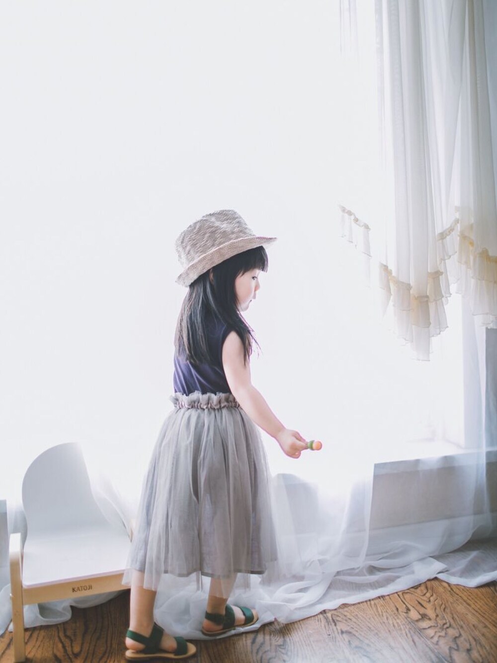 グレー系のスカート、ブルー系のベストを着用したキッズの春コーディネートの1枚目の写真