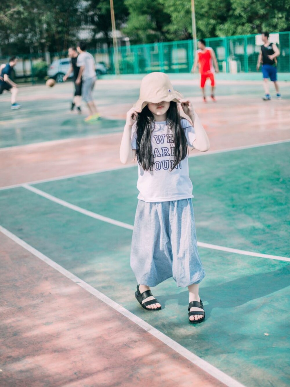 ホワイト系のTシャツ/カットソー、シルバー系のその他パンツを着用したキッズの春コーディネートの1枚目の写真