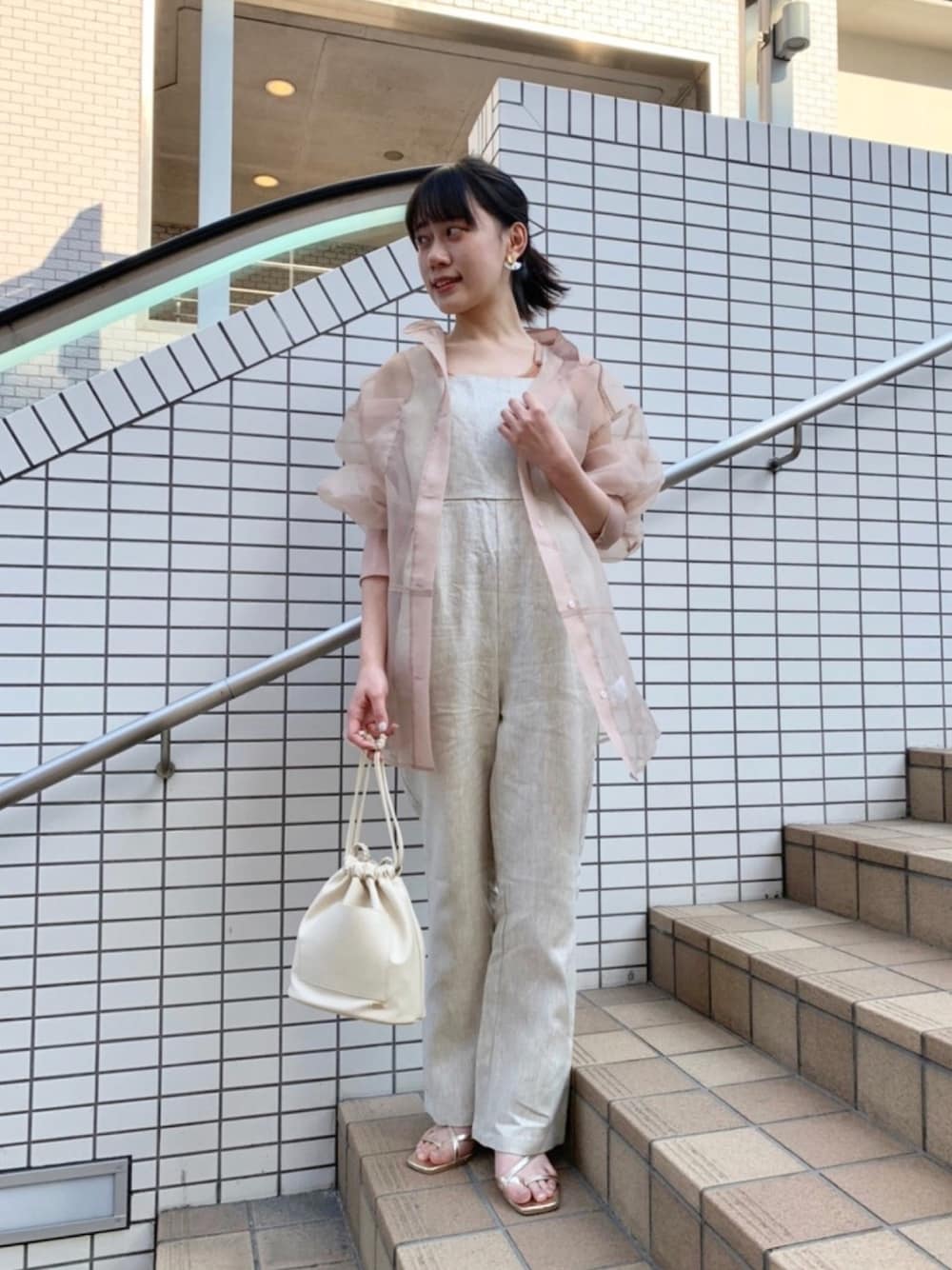 やっぱり、シアーシャツがかわいい、、 この透け感たまりません、、!!🌿 サロペットは麻素材で夏を感じます!!