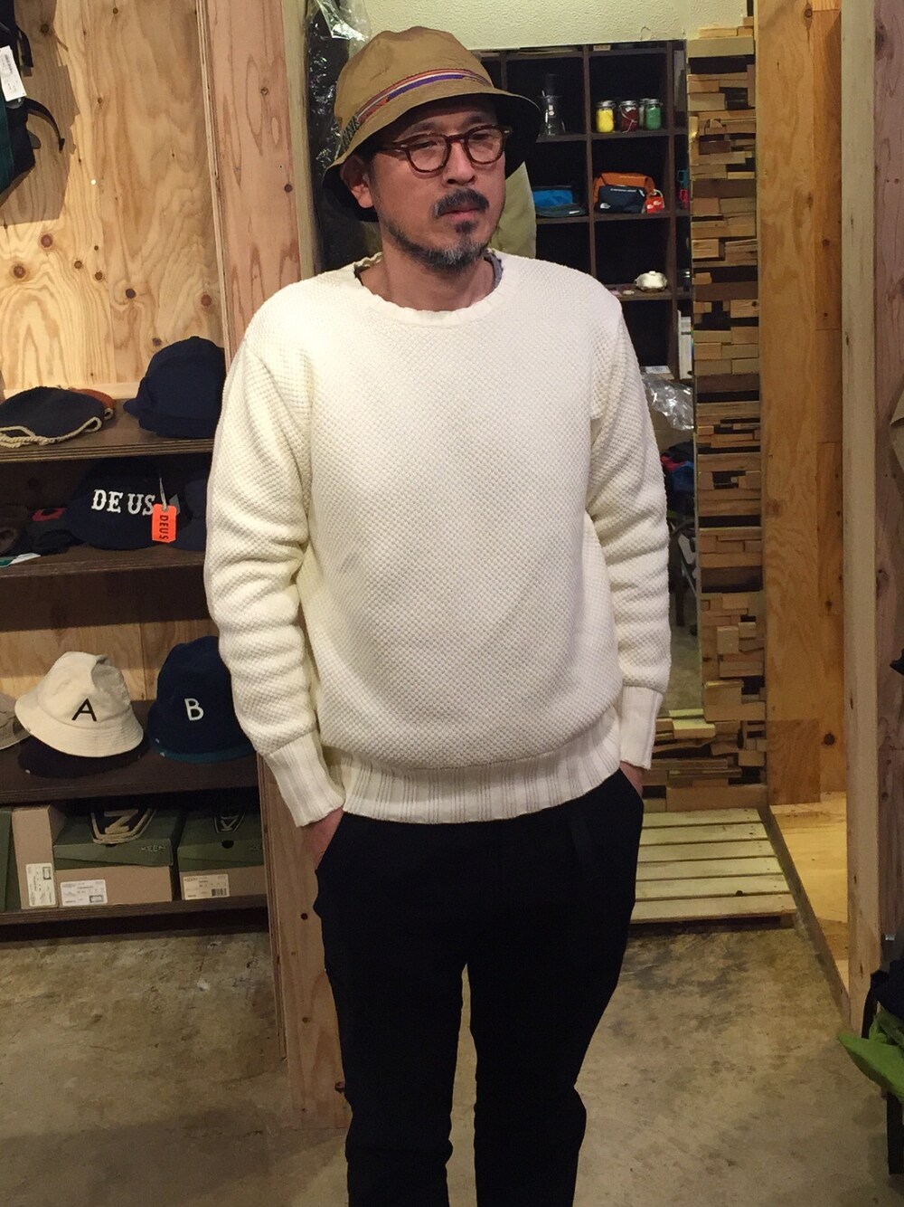 独特の編地と着心地のいい素材とシルエット。Blurhms のニット。いいです。