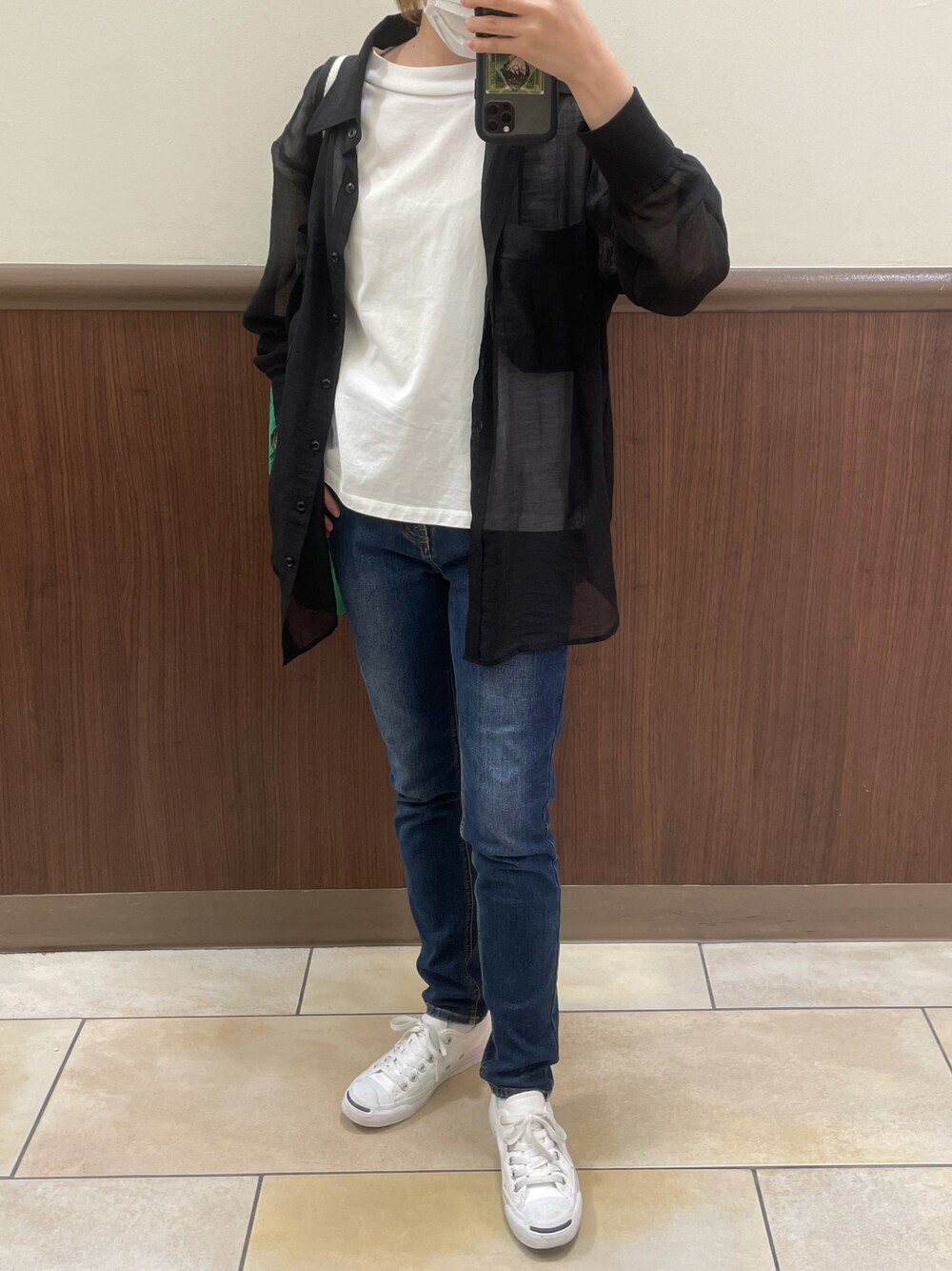 ご覧頂きありがとうございます!少しでも良いなと思っていただけると幸いです。 王道の白Tとデニムに秋の新作シャツを羽織ってみました! シアー感があり、羽織ってもいいしインナーに使っても良さそうです(๑′ฅฅ‵๑)