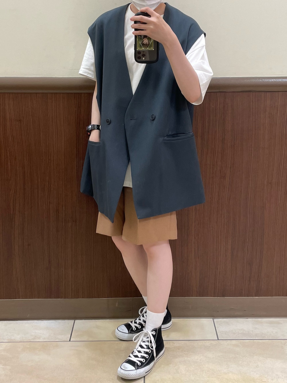 ご覧頂きありがとうございます! 少しでも良いなと思って頂けると幸いです。 ジレ×ハーフパンツ