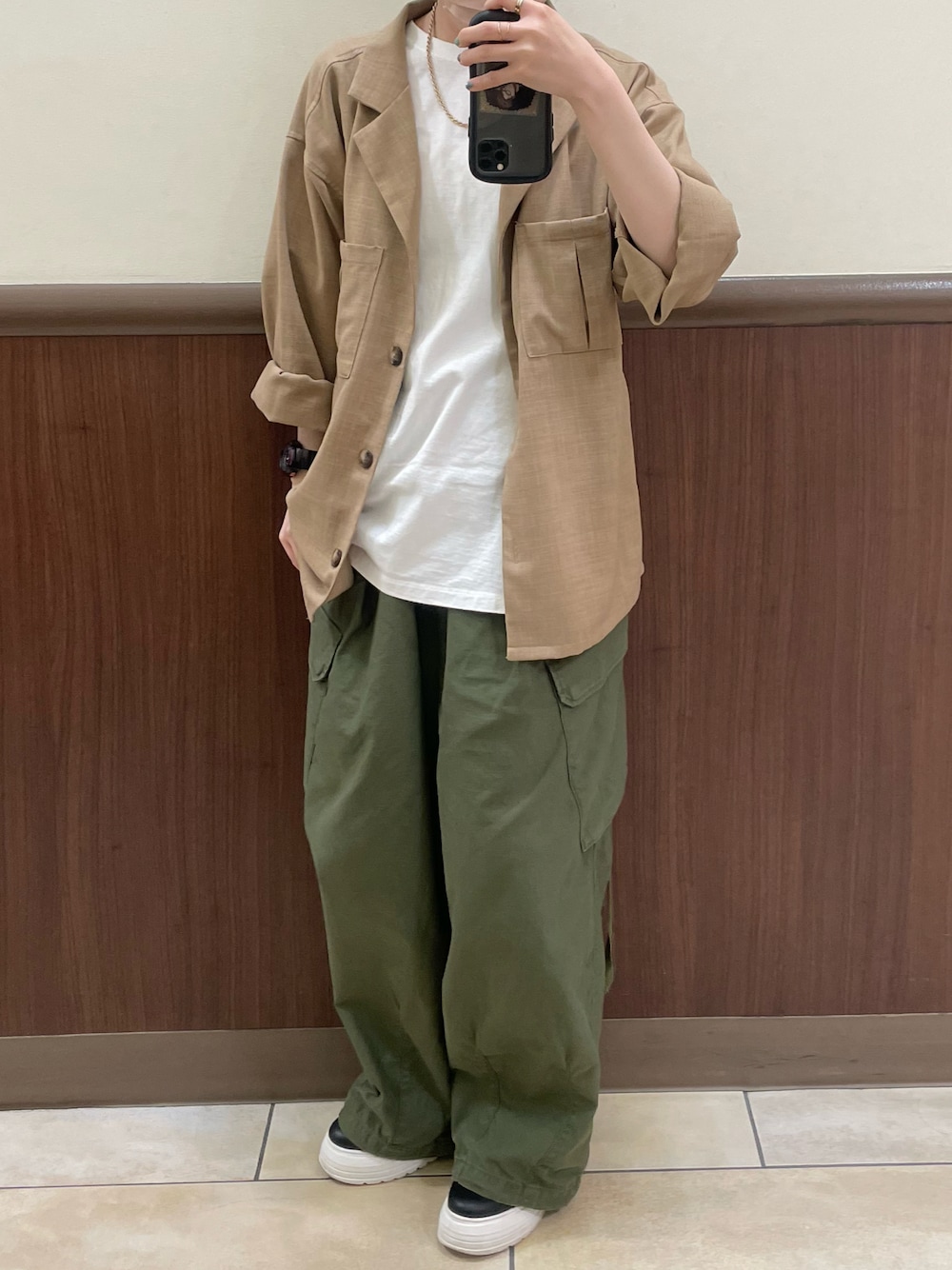 fujino_otkmのカーゴパンツ「バックサテンカーゴパンツ」を使ったコーディネート