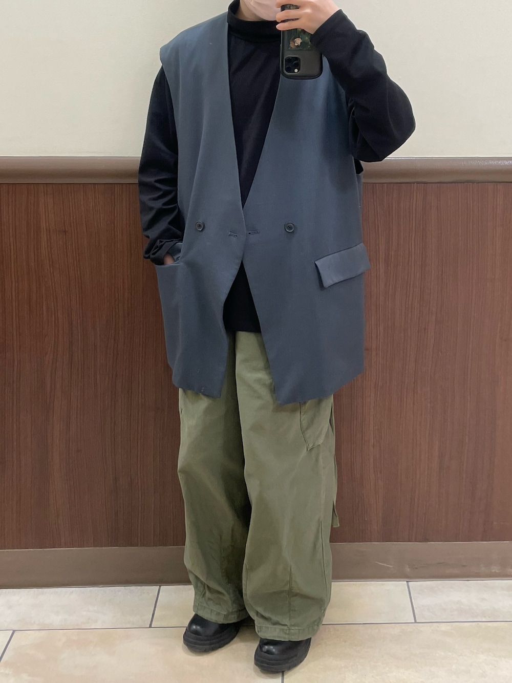 fujino_otkmのベスト「TRストレッチスーツ地 ルーズ ダブルジレベスト EMMA CLOTHES」を使ったコーディネート