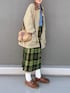 トラッドカジュアル📗 トラッドカジュアル🌿 グリーンチェックのオニールに デニムシャツを合わせて少しラフに。 ベージュアウターでやわらかくまとめました☺️ 見て下さりありがとうございました♡