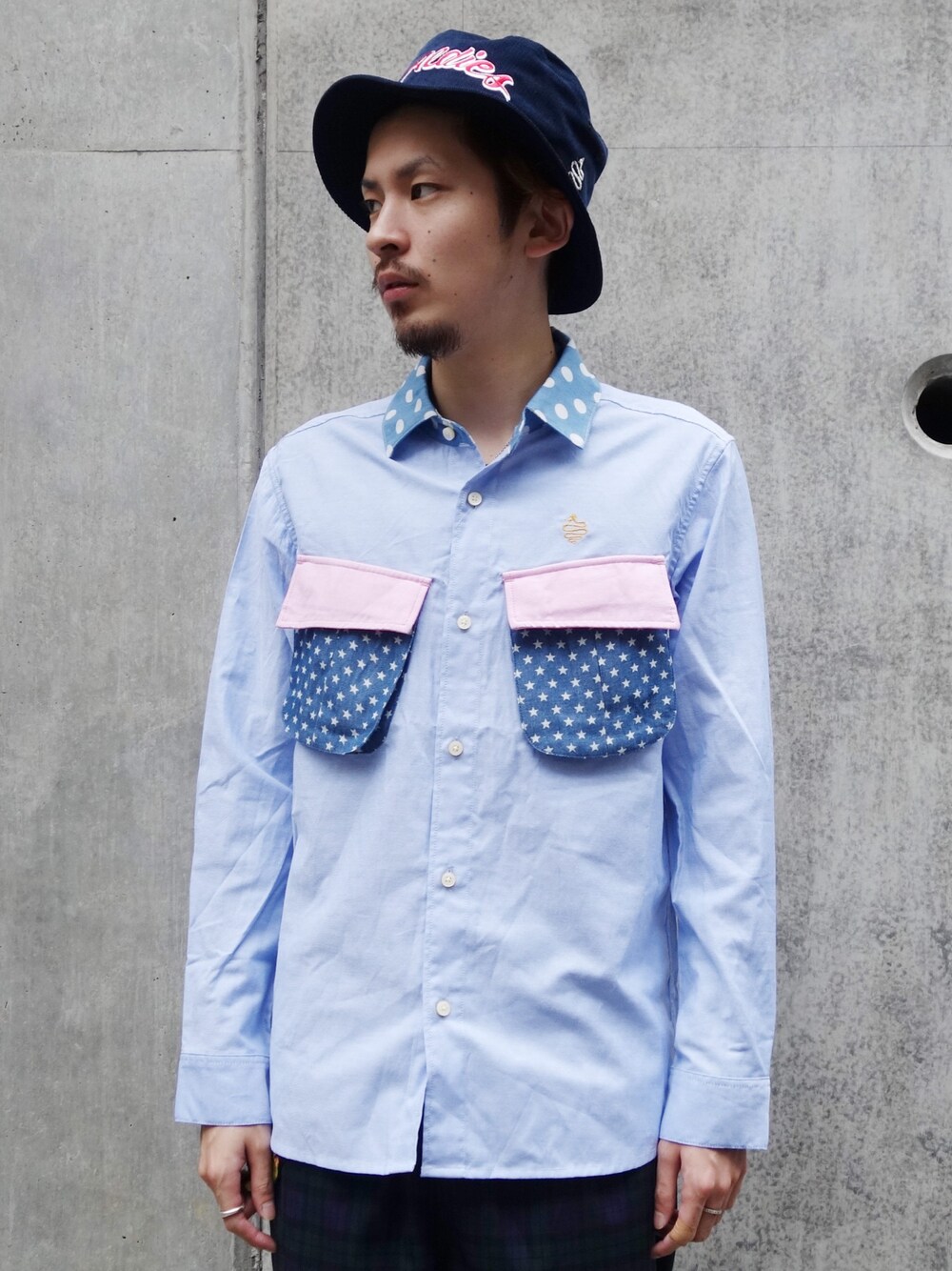 ALDIESSTAFFのシャツ/ブラウス「Eyes Shirts 星柄 切り替え コットンシャツ」を使ったコーディネート