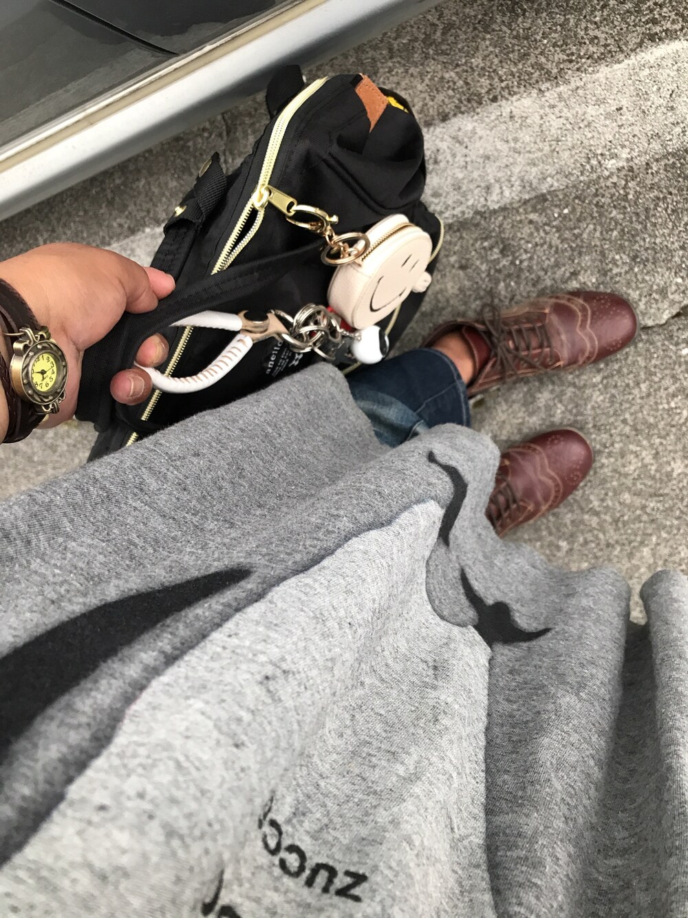 仕事帰りバテバテな足元失礼します。リアルペンギンtシャツは七分袖ビッグサイズ!ブレス時計お気に入りだけどノーブランドかな?かわいければブランドはあまり気にしないで買いますw