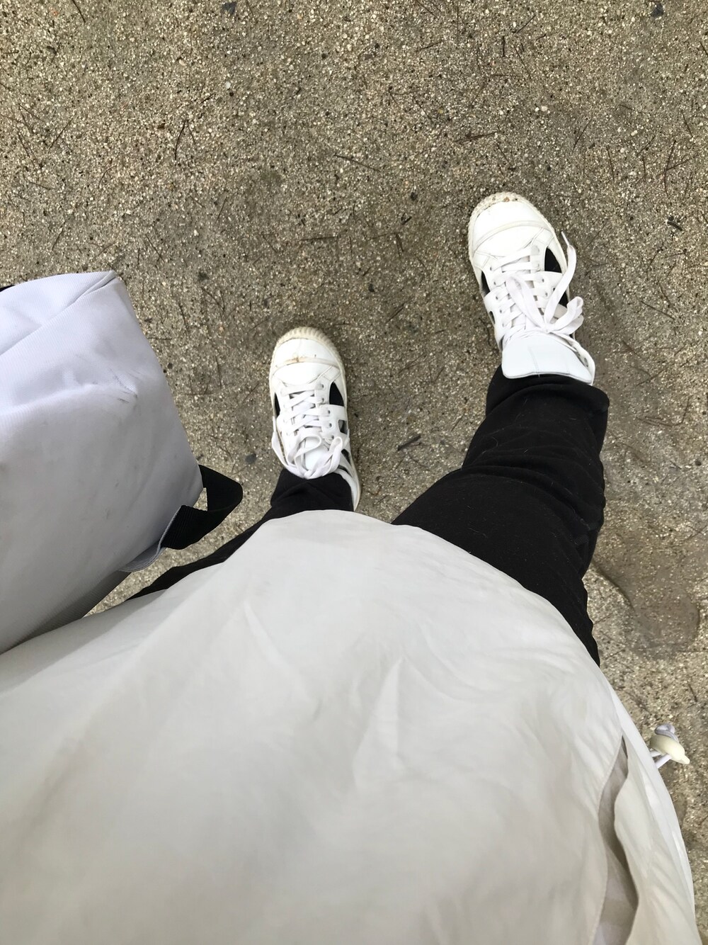 お久しぶりです!雨なのに白〜♬やっと秋らしくなりました。スニーカーもジャケットもかなり古いものです。今日も足元から失礼します//