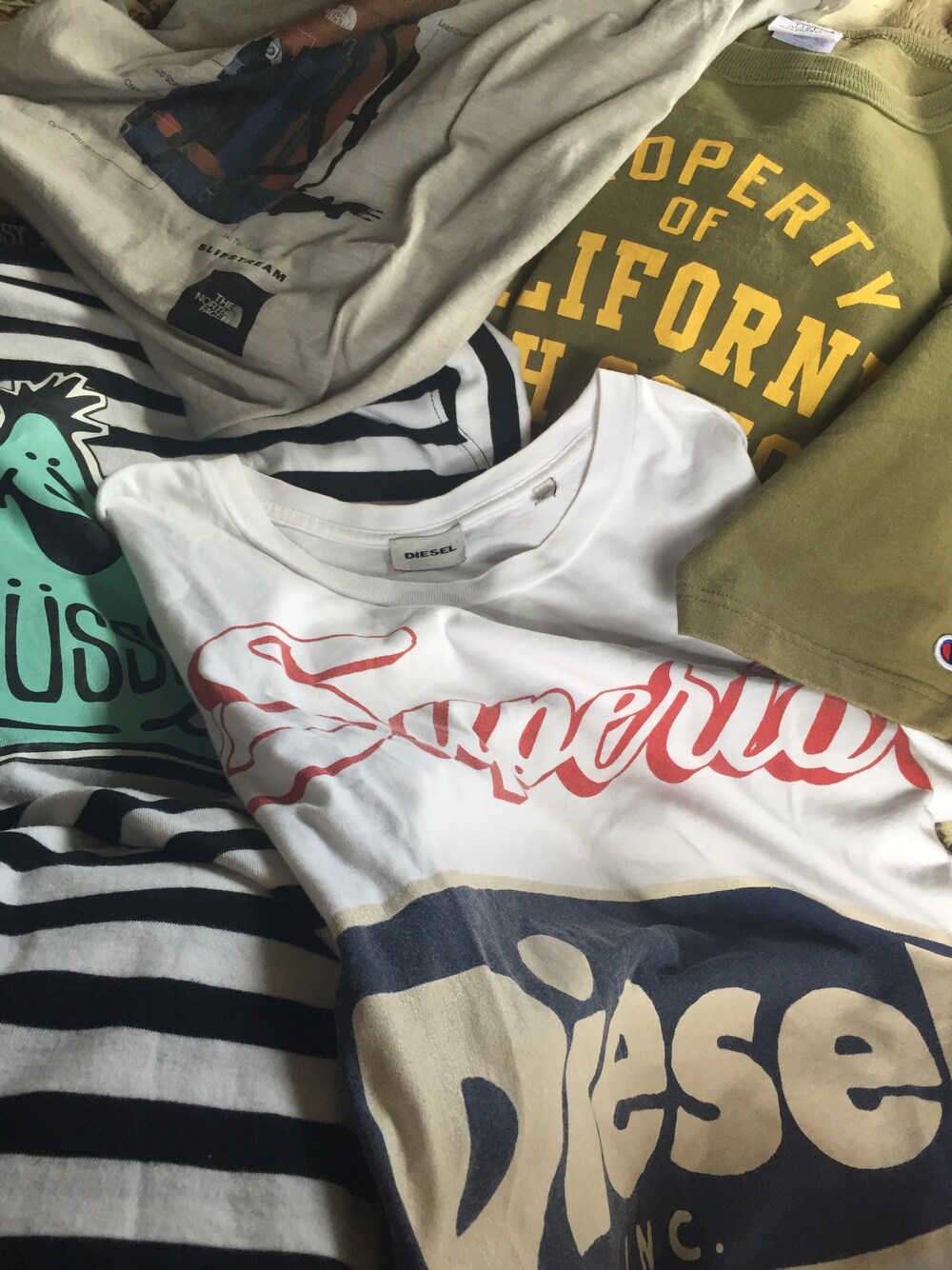 暇なんでtシャツ出してます tシャツ大好き ノースフェイス チャンピオン stussy DIESEL など デザインと素材とかで 大体一目惚れ買いしたやつばかり メンズLをざっくり着てます🐷