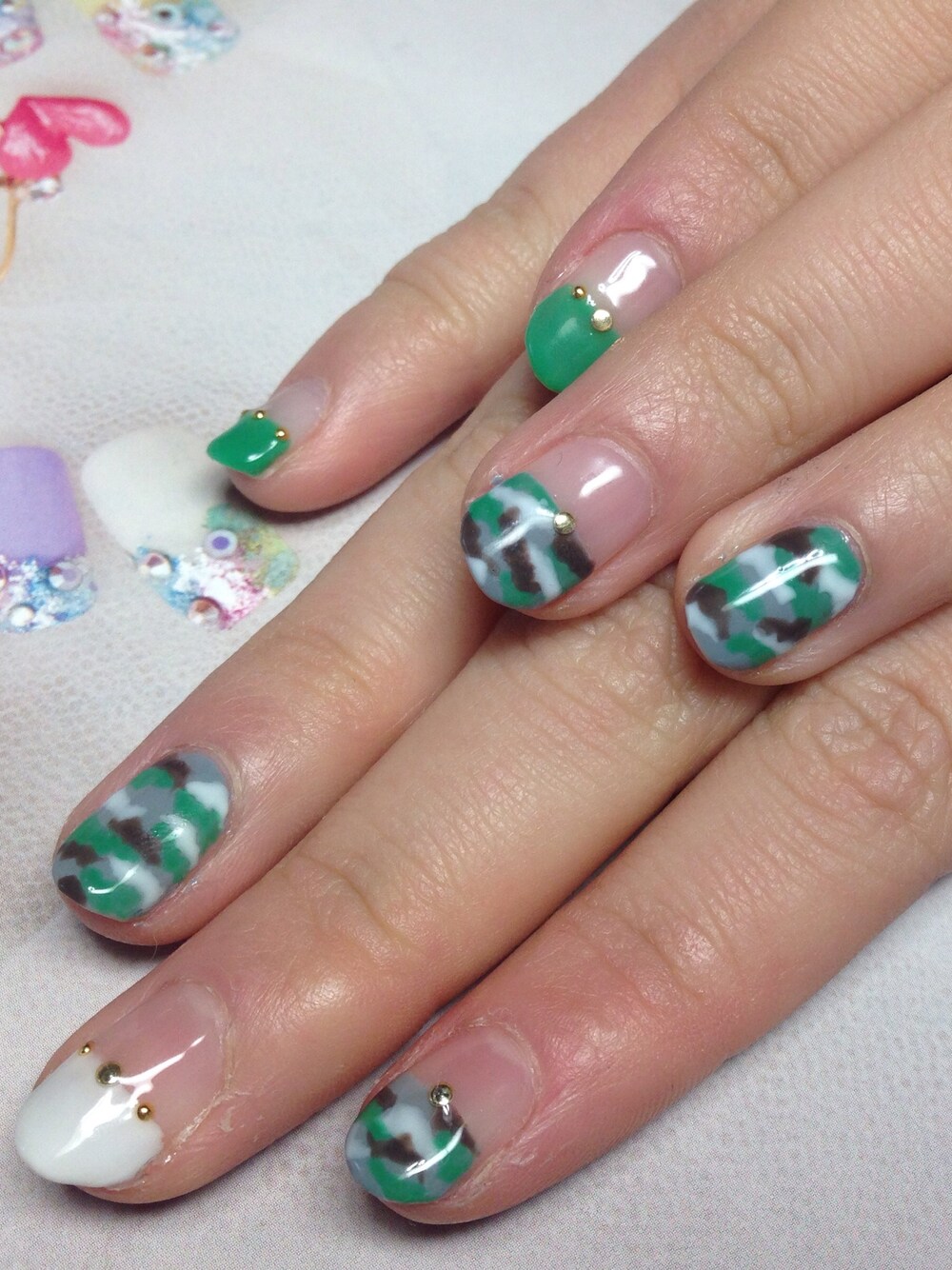 最近カモフラ柄が流行ってるってことで 春に友達にしたネイルをあっぷ。 初投稿がネイル♡ 服も好きやけど、ネイルも好き。 ちょくちょく好きな服とか あっぷしていきたいなー!