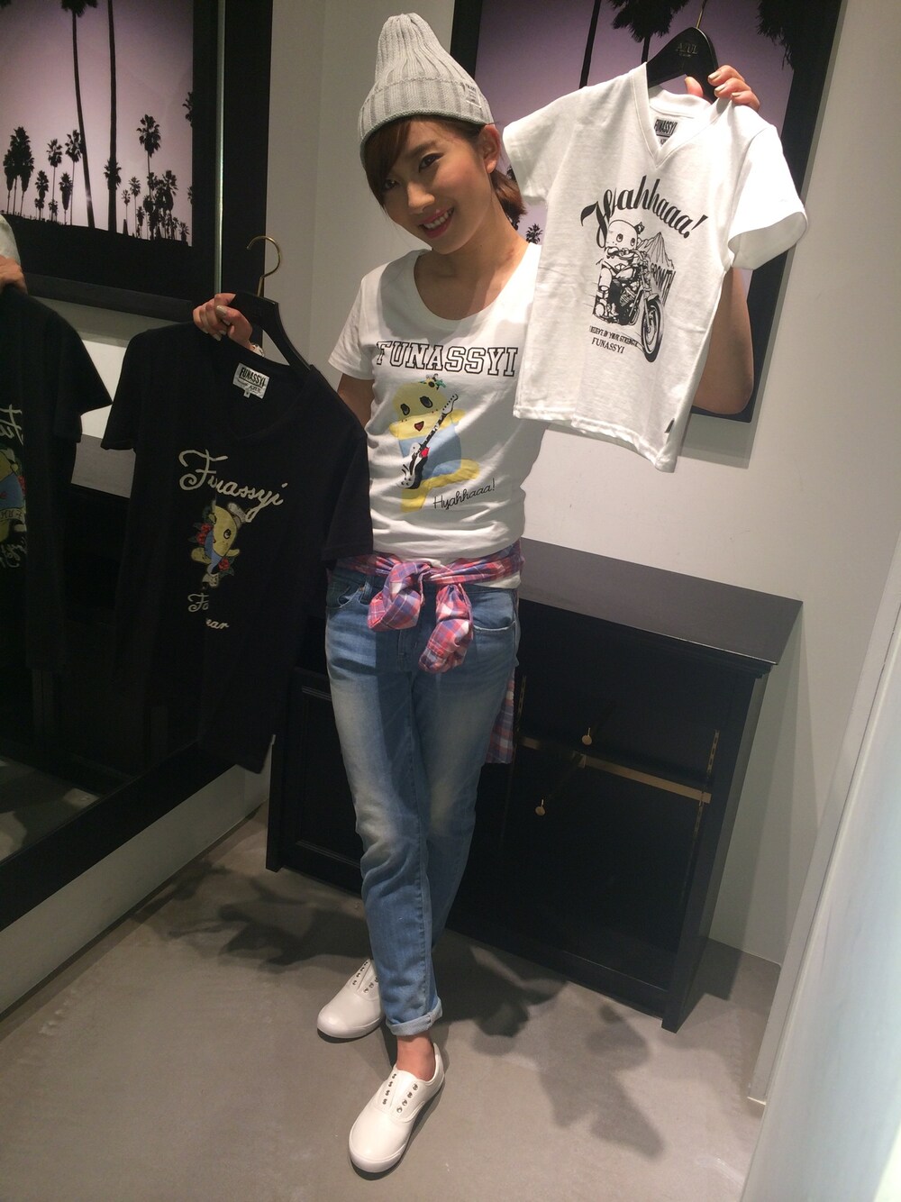 主役は、ふなっしーです!!笑 4/24から販売しております AZUL×ふなっしーコラボT💓 レディース・メンズ・キッズがあるので ご家族やカップルの方にお勧めです🙌 バリエーションも豊富なので 是非!お近くのお店へ💕 ふなっしーTシャツと合わせている テーパードパンツは GWスペシャルプライスで 期間限定で5,990+tax→→ 3,990+taxと大変お買い得です😆