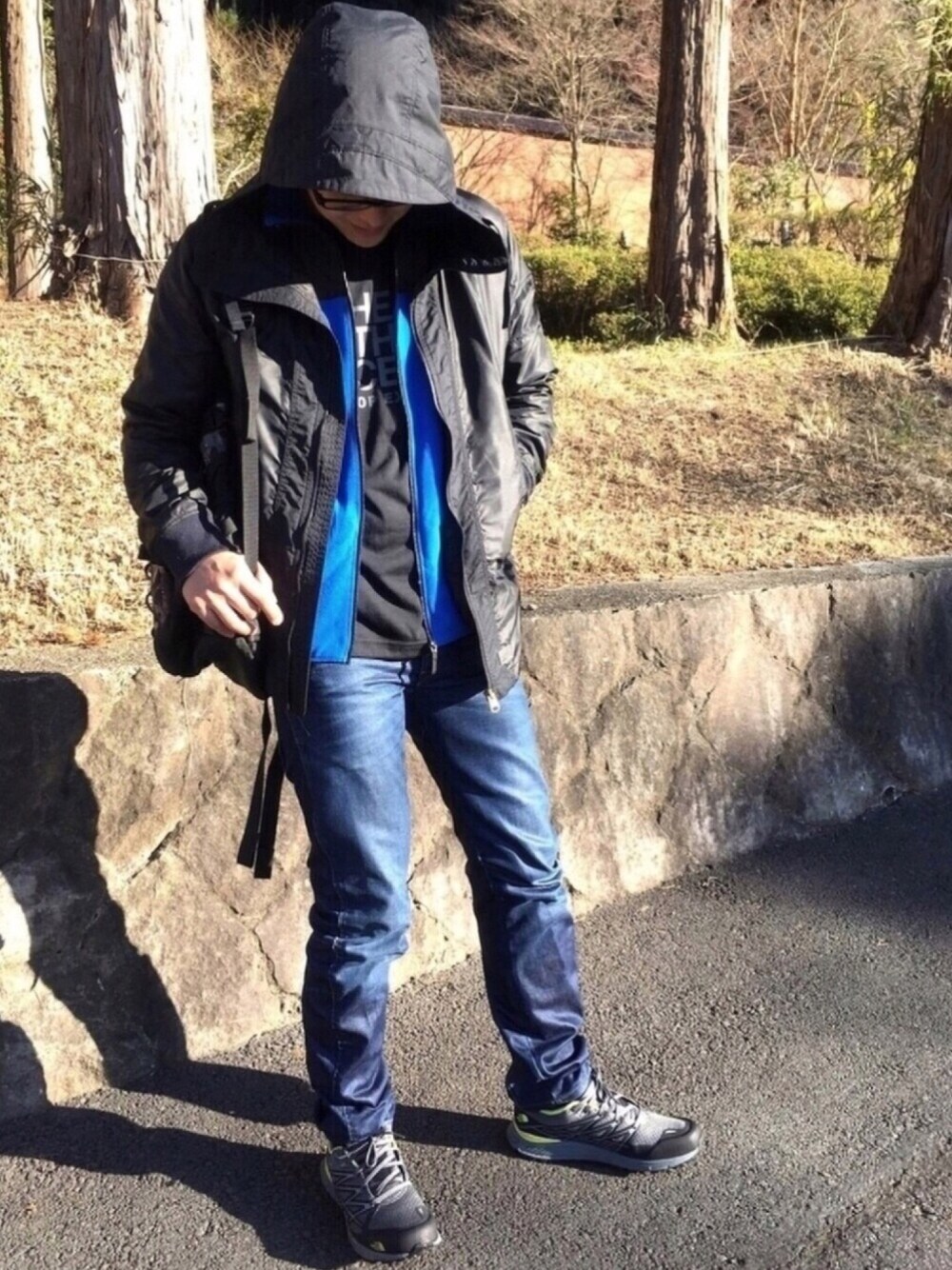 天気が良かったので青コーデが映えると思い、今日は青で統一しました! ちなみにこのお気に入りのG-starのナイロンパーカー、とても濃いブルーなんです! 陽の下にいると青だと分かるのですが、それ以外だと黒だと思ってしまう程…… 大きめのフードに惹かれてしまったのと、綺麗な色だったので表参道で衝動買いしたのを覚えております( ¨̮ ) 自分の好きなブランドをコンビしてみたら、とてもハッピーな1日になりましたね٩(ˊᗜˋ*)و 天気いいとやっぱ出かけたくなる心理は皆同じみたいで、車での移動は混み混みでしたねー。 分かってはいたのですがそれでも出掛けるのはやめられません(っ'-' )╮ =͟͟͞͞◒