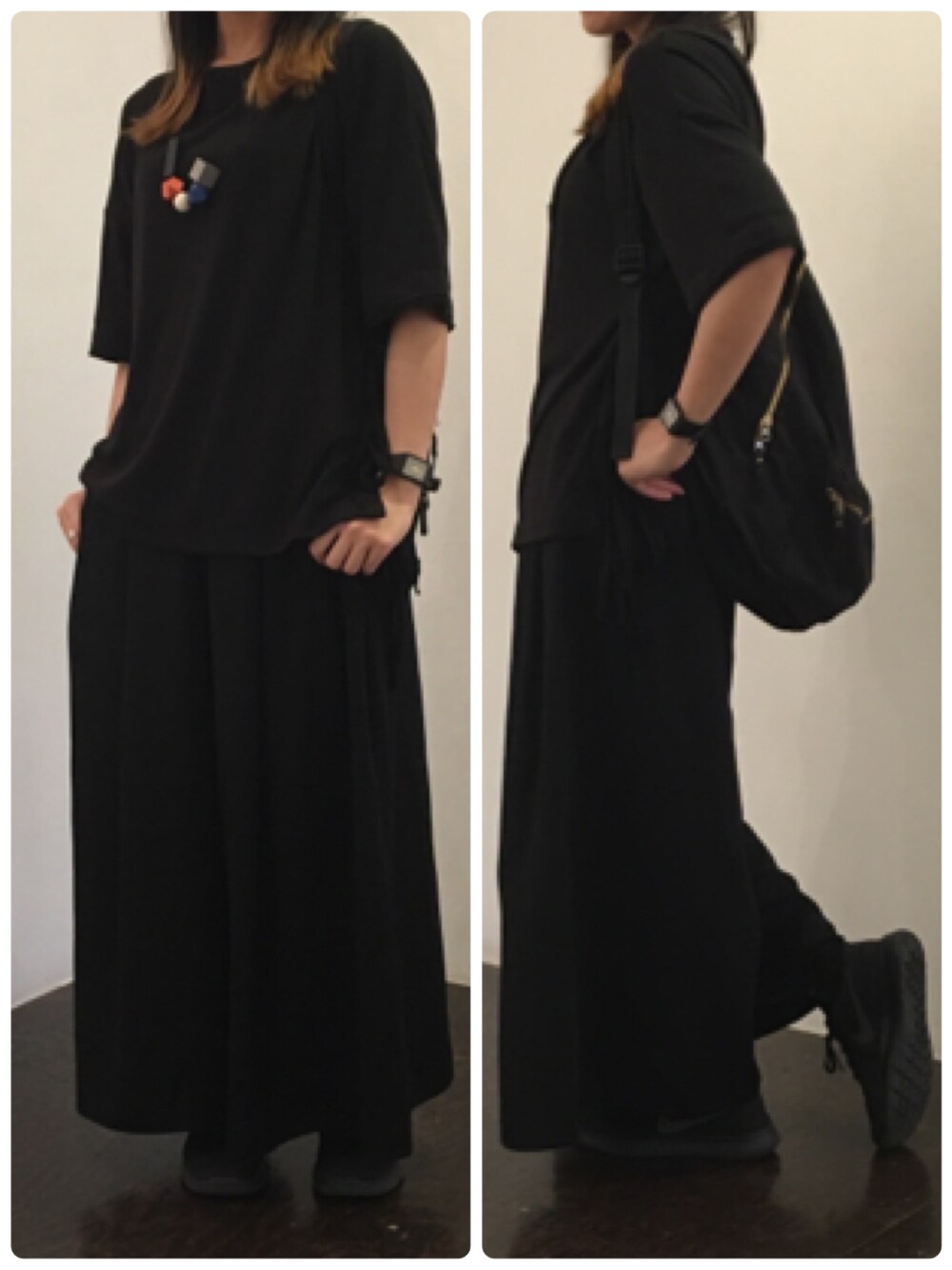 Tシャツのサイドには 紐があってかわいい(見えない) 大きなモチーフの ネックレスがポイント この日は 原宿で古着屋巡り