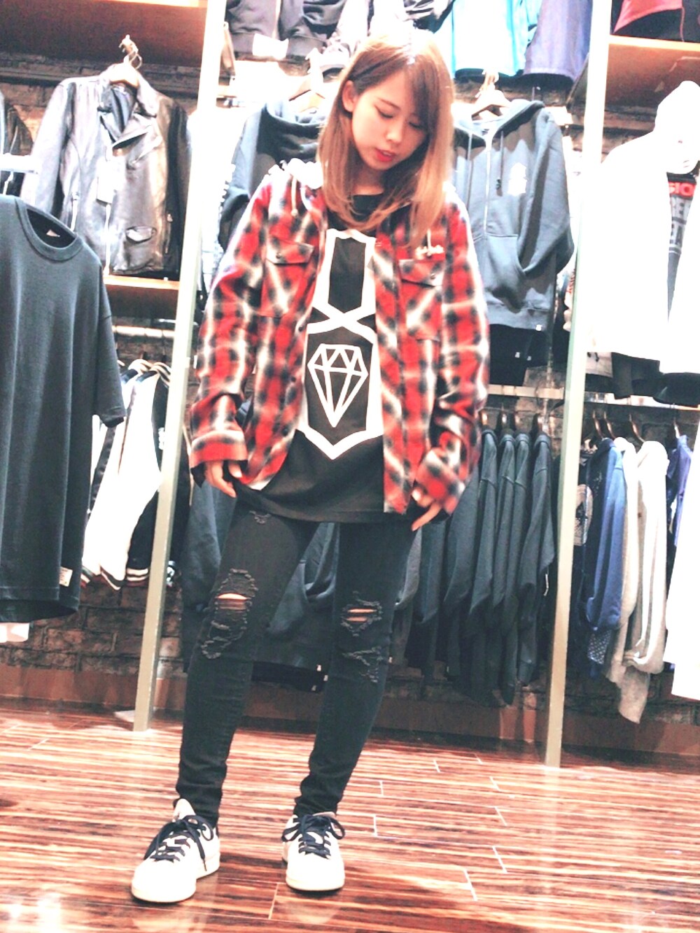 Tシャツはワンサイズ大きめにしました◎ ストリートを可愛く着こなすはずが ちょっといかつくなった感(笑)