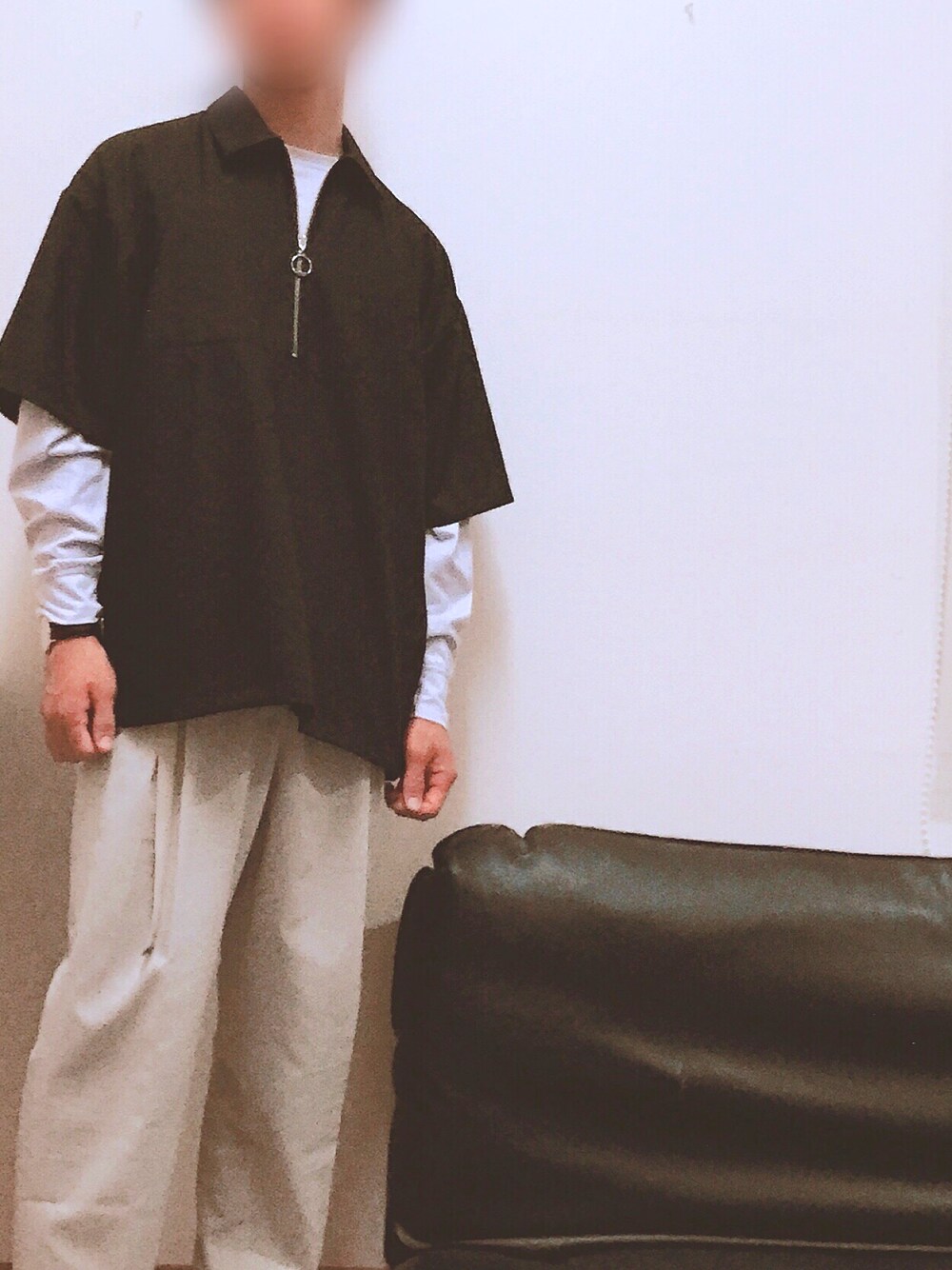 こんにちは😊 見ていただきありがとうございます👏 今回も大好きなHAREのコーデですっ💃 今流行っている襟付きハーフジップと、袖レイヤードを両方取り入れてみました笑 テーパードトロワイドパンツがオフホワイトということで、淡いパープルを合わして黒でしっかりと締めました🤤 お金がないのにいっきに買ってしまったのでこの夏はなんとかヘビロテしまくりますっ笑 あと、隣にあるソファーは無視でお願いします笑 ご観覧ありがとうございました😊
