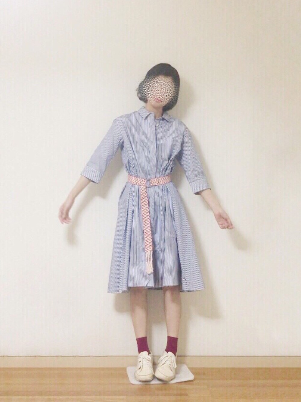 おはようございます☼ 自分でもよく分からないけど にょーんって広がったポーズ🐈(?) ストライプに 赤のギザギザベルト合うかなあと 試してみました
