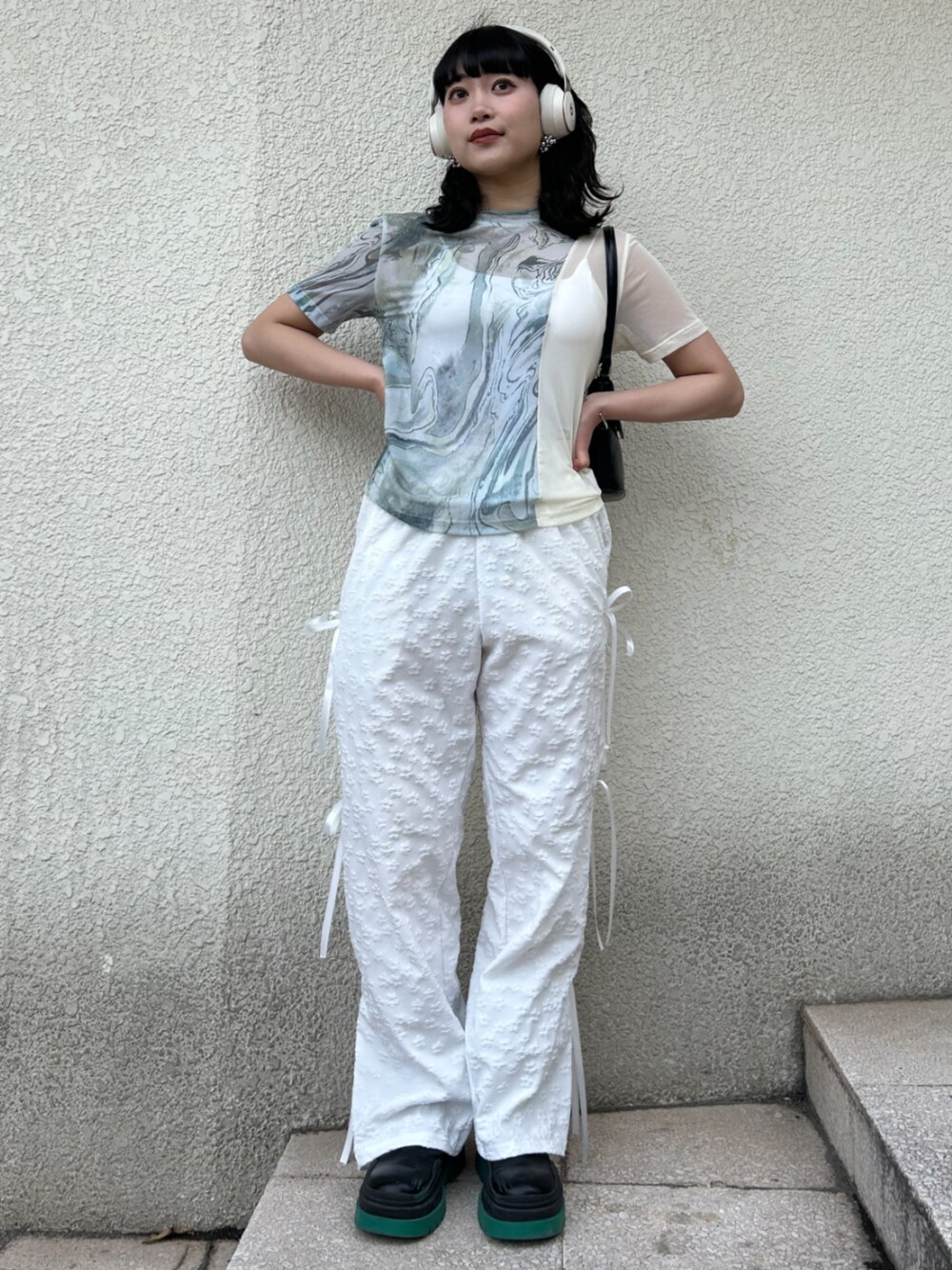allm(Enewd nina)のTシャツ/カットソー「【ZOZO限定】マーブル シアー スウィッチング トップス バイカラー 透け感 柄 切替え」を使ったコーディネート
