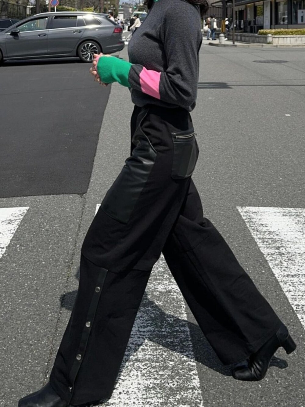 allm(Enewd nina)のその他パンツ「【ZOZO限定】レザー ミックス スナップ パンツ ワイド フェイクレザー」を使ったコーディネート