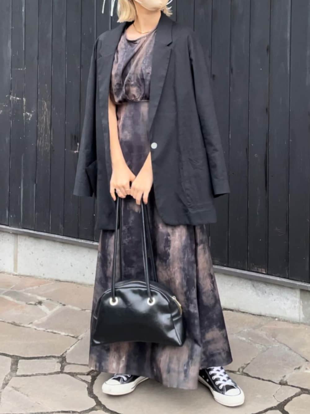allm(Enewd nina)のワンピース「サイドホール ワンピース 肌見せ ヘルシー マーブル スリーブレス ロングワンピース」を使ったコーディネート