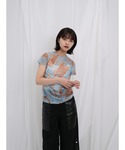 allm(Enewd nina)のTシャツ/カットソー「【ZOZO限定】マーブル シアー トップス ギャザー シースルー カットアウト カットソー 半袖」を使ったコーディネート