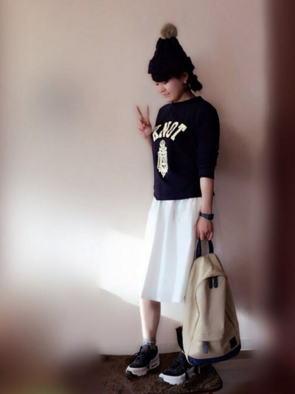 marimariのニットキャップ/ビーニー「【studio CLIP】 ケーブルファーツキニットワッチ」を使ったコーディネート