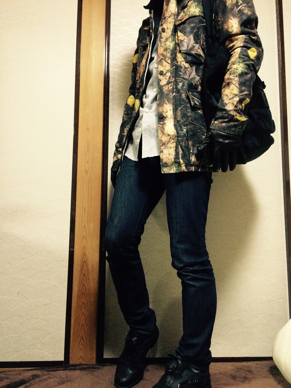 あものミリタリージャケット「LEMON CAMO WAXED COTTON JACKET」を使ったコーディネート