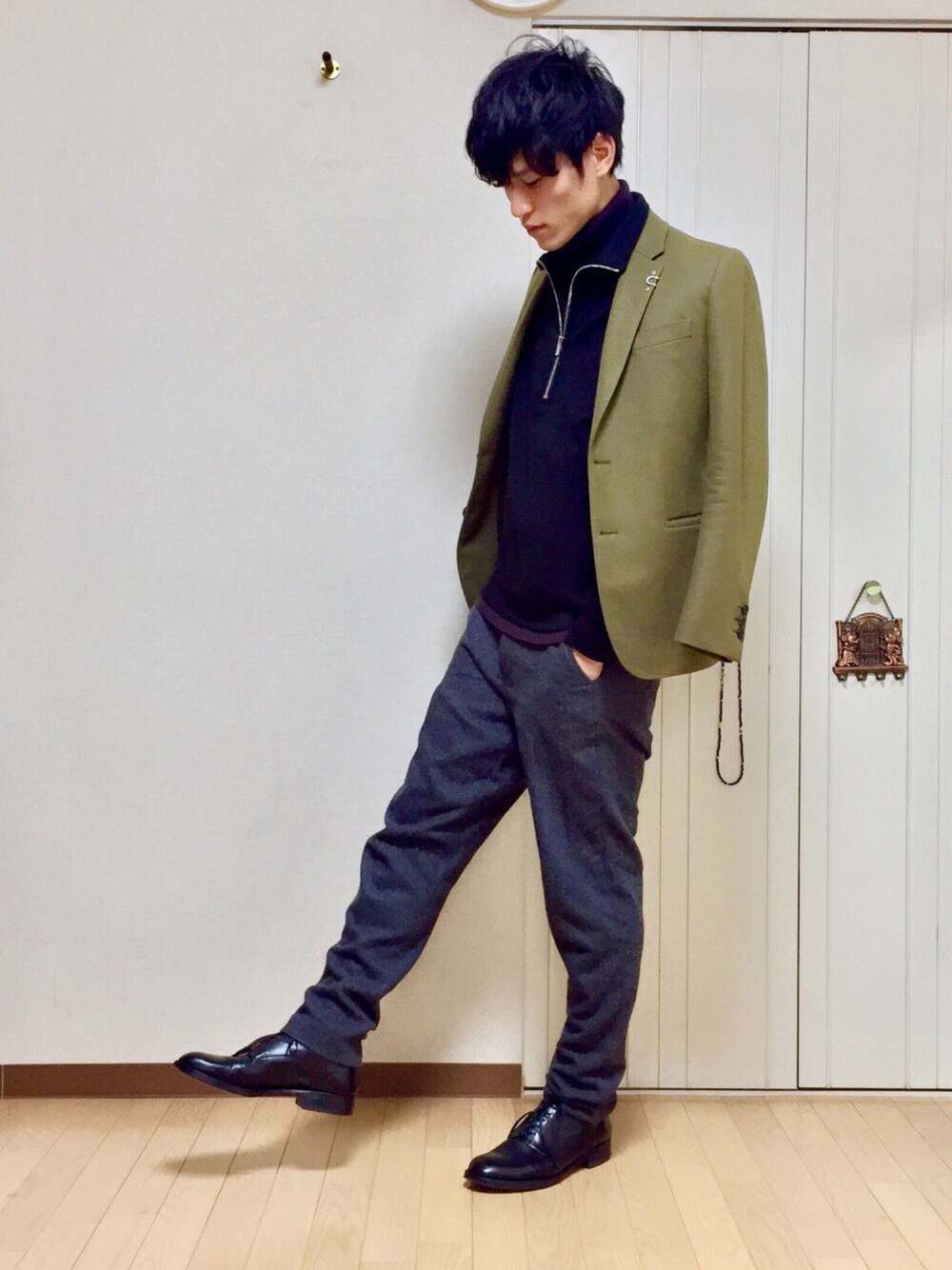 カーキにトラックジャケット! トラックジャケットの中には、ブラウンタートルニット(笑) ジャケットだけど、保温性バッチリなコーデ(笑)