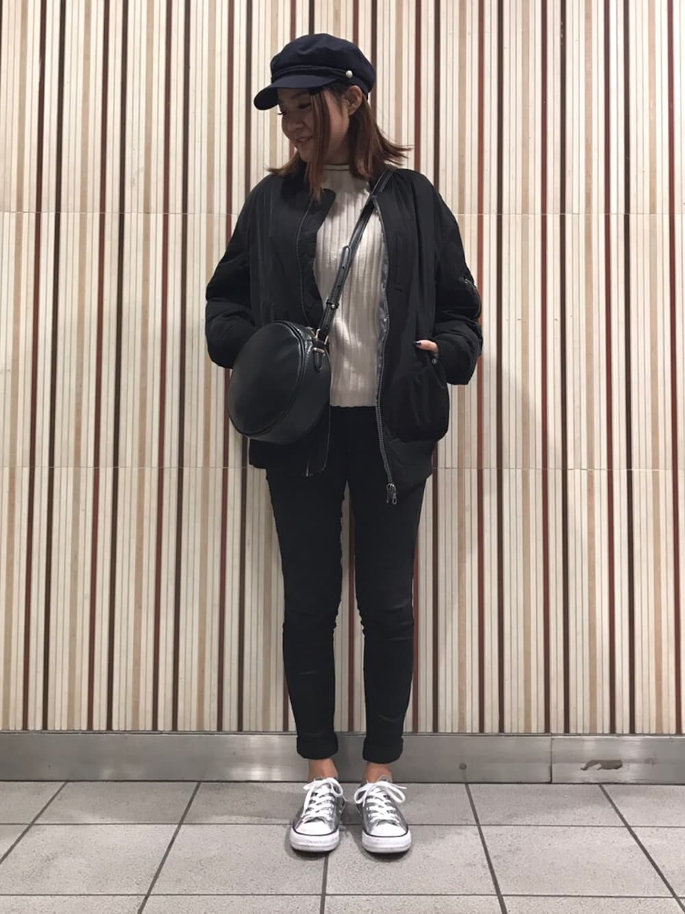 ワイドパンツをスキニーにした着回しコーデ💁 シルバーのコンバースは合わせやすくてお気に入り💘
