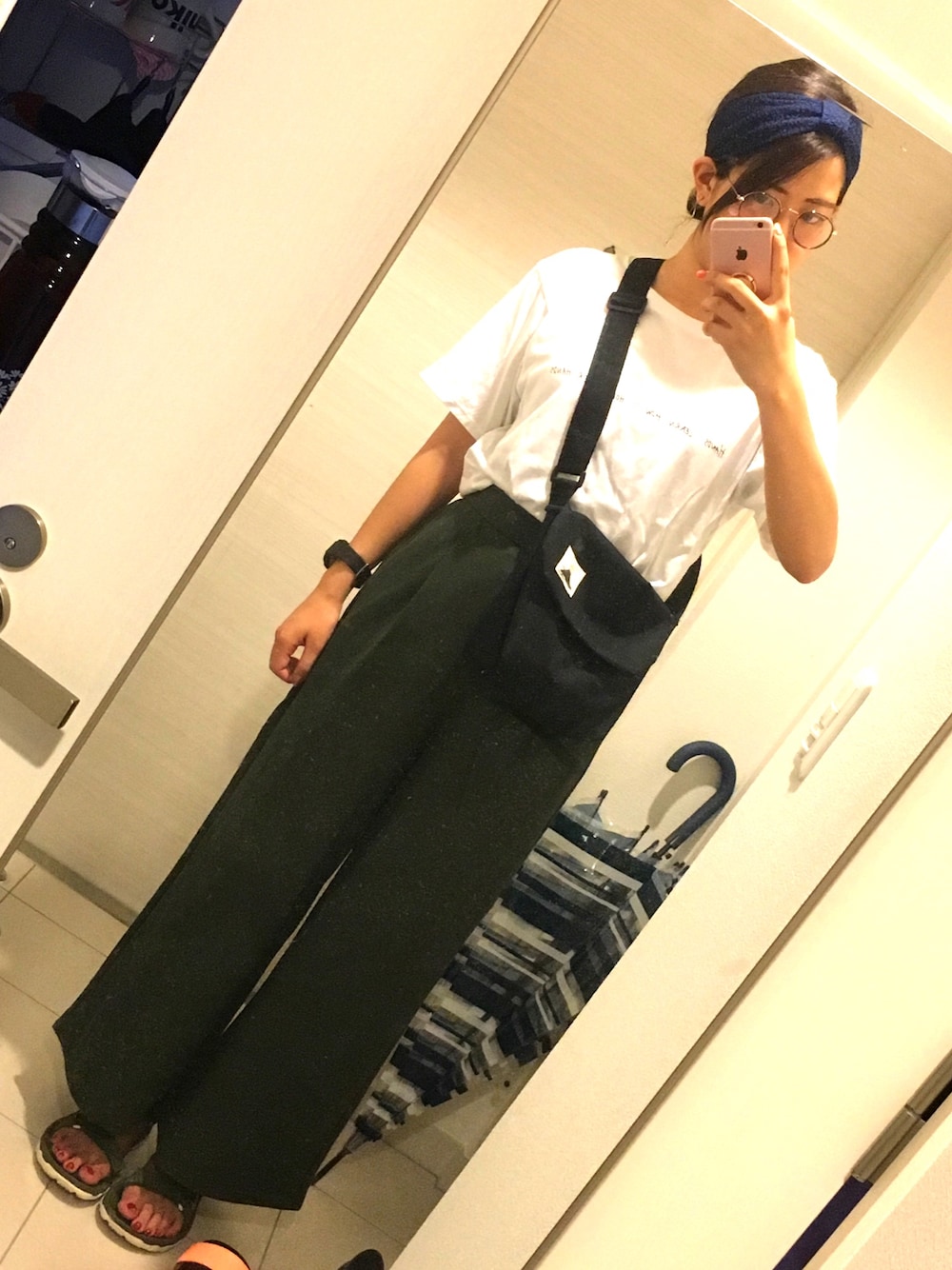 ブランドでいうと無印良品的コーデ ロハスな感じといいましょうか… シンプルな白いTシャツに カーキのリネンワイドパンツ カーキのTeva シンプルイズベストですね〜涼しげ